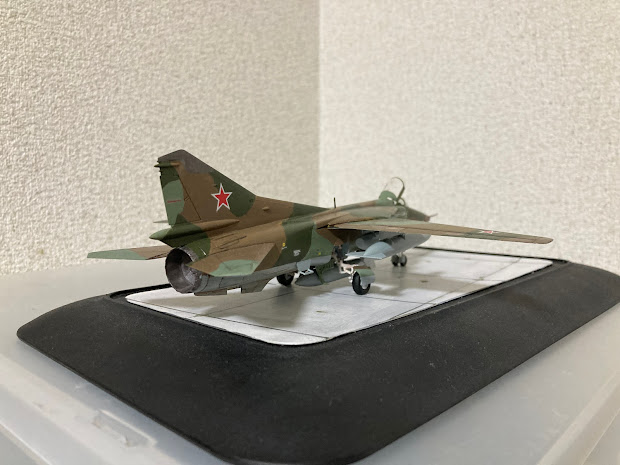 The first Flogger attack variant was powered by the AL-21F. Only 24 were produced, due to a lack of engines (the AL-21F was destined for the Sukhoi Su-17/22 and the Su-24 Fencer). It was armed with the GSh-23L cannon, carrying 200 rounds.